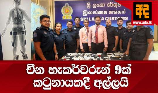 Read Moreපරිගණක මූල්ය අපරාධ ( Cyber Crimes ) සිදු කිරීම සදහා මෙරටට පැමිණෙමින් සිටි චීන ජාතිකයන් 09 දෙනෙකු සමග , රුපියල් දෙකෝටි හතලිස් ලක්ෂ විසි දහසක් වටිනා විද්යුත් සන්නිවේදන උපකරණ තොගයක් ද , කටුනායක ගුවන් තොටුපොළ පැමිණීමේ පර්යන්තයේ කිසිවක් ප්රකාශ කිරීමට නොමැති ’’ හරිත මාවත ’’ ඔස්සේ පිට කර ගෙන යමින් සිටිය දී , 04/16 දින අලුයම ගුවන් තොටුපොළ රේගු නිලධාරීන් පිරිසක් විසින් අත් අඩංගුවට ගෙන තිබේ .