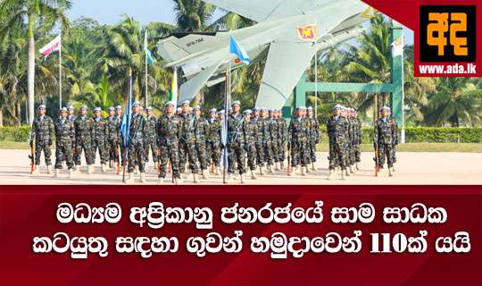 Read Moreමධ්යම අප්රිකානු ජනරජයේ සාම සාධක මෙහෙයුම් රාජකාරීන් සදහා පිටත්ව යාමට නියමිත ශ්රී ලංකා ගුවන් හමුදා සාමාජිකයන්ගේ විසිර යාමේ පෙළපාලිය ගුවන් හමුදාපති එයාර් මාර්ෂල් බන්දු එදිරිසිංහ මහතාගේ ප්රධානත්වයෙන් කටුකායක ගුවන් හමුදා මූලික කදවුරෙදී අභිමානවත් අයුරින් පැවැත්විනි.