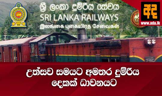 Read Moreනත්තල් උත්සවය, පාසල් නිවාඩුව සහ වසර අවසානයේ පවතින දීර්ඝ නිවාඩුව හේතුවෙන් අමතර දුම්රිය ධාවනයට එක් කිරීමට දුම්රිය දෙපාර්තමේන්තුව තීරණය කර ඇති බව දුම්රිය දෙපාර්ථමේන්තුව නිවේදනයක් මගින් දන්වා සිටිනවා.