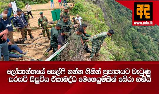 Read Moreහෝර්ටන්තැන්නේ ලෝකාන්තයේ සෙල්ෆි ඡායාරූප ගැනීමට ගිය විශ්ව විද්යාල සිසුවිය අඩි 50ක් ප්රපාතයට ඇද වැටෙයි. පැය ගණනක මෙහෙයුමකින් පසු සිසුවිය නිරුපද්ධිතව බේරා ගැනේ.