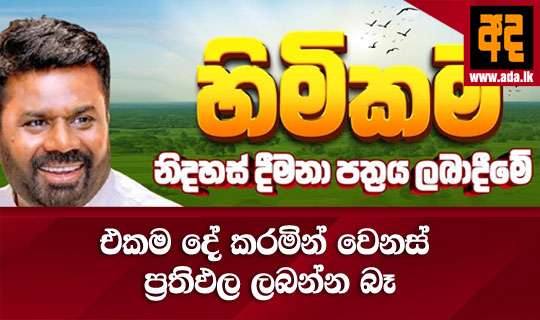 අවසර පත්ර හා දීමනා පත්ර මත ප්රදානය කර ඇති ඉඩම් සංවර්ධනය කරමින් භුක්ති විඳින ගොවි ජනතාව ප්රමුඛ මහජනතාවට එම ඉඩම්වල පරම අයිතිය ප්රදානය කෙරෙන ‘හිමිකම’ නිදහස් ප්රදානපත්ර පිළිගැන්වීමේ ජාතික වැඩසටහනේ සමාරම්භක අවස්ථාව ජනාධිපති අනුර කුමාර දිසානායක මහතාගේ ප්රධානත්වයෙන් හෙට (27) ප.ව 2.00ට අනුරාධපුර කොරක