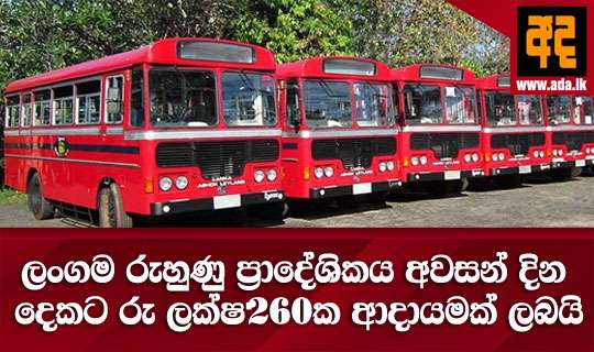ශ්රි ලංගම රුහුණු ප්රා දේශිකය විසින් ඉකුත් වසරේ (2025) අවසන් දින දෙක තුලදි රුපියල් දෙකෝටි හැටලක්ෂයක ( 26,000,000) ආදායමක් උපයාගැනිමට හැකිවු බව රුහුණු ප්රා දේශිකයේ ප්රධාන කළමණාකරු උපුල් චන්දන මහතා පවසයි.