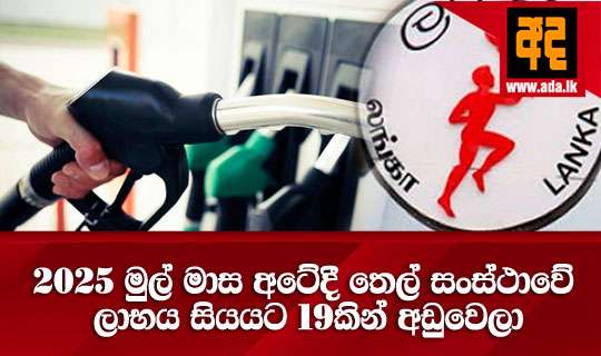 ලංකා ඛනිජතෙල් නිතිගත සංස්ථාවේ ශුද්ධලාභය ඉකුත් වර්ෂයේ (2025) පළමු මාස අට තුලදි රුපියල් බිලියන 22.1 දක්වා සියයට 19කින් අඩුවි ඇති බැව් මුදල් ක්රමසම්පාදන හා ආර්ථික සංවර්ධන අමාත්යංශය විසින් නිකුත් කොට ඇති අයවැය ආර්ථික සහ මුල්ය තත්ත්වය පිළිබද වාර්තාවේ සදහන් වේ.