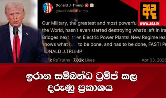 Read Moreඉරානය එක්සත් ජනපදයෙන් සටන් විරාමයක් ඉල්ලා ඇති බවත්, ඉරානය හෝර්මුස් සමුද්ර සන්ධිය නැවත විවෘත කිරීමෙන් පසුව පමණක් එම ඉල්ලීම සලකා බලන බවත් ජනාධිපති ඩොනල්ඩ් ට්රම්ප් අද පැවසීය.