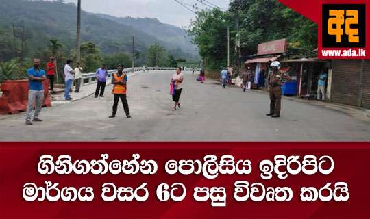 නායයෑමේ අවධානමක් හේතුවෙන් වසර 6ක් තිස්සේ වසා දමා තිබූ හැටන් මහනුවර ප්රධාන මාර්ගයේ ගිනිගත්හේන පොලිසිය ඉදිරිපිට කොටස අදියර කිහිපයක් යටතේ ආරක්ෂිත පැති බැමි ඉදි කර මාර්ගය කාපට් අතුරා ප්රතිසංස්කරණය කිරිමෙන් පසු (01) දින එම මාර්ගය රථ වාහන ධාවනයට විවෘත කෙරිණ.