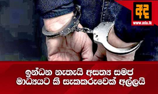 රට තුළ ඉන්ධන නොමැති බව සඳහන් කරමින් විදේශිකයන් පැමිණිම අධෛර්යමත් වන අයුරින් අසත්ය ප්රචාර සමාජ මාධ්ය මගින් ප්රචාරය කළ අවුරුදු 53ක සැකකරුවෙක් අත්අඩංගුවට ගත් බව පොලිසිය කියයි. සැකකරු වත්තේගම පදිංචිකරුවෙක් වන අතර අද දිනයේදීම කොළඹ මහේස්ත්රාත් අධිකරණයට ඉදිරිපත් කිරිමට නියමිතය.