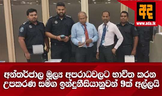 Read Moreමෙරට තුළ අන්තර්ජාලය භාවිතා කරමින් මූල්ය අපරාධ කිරීම යොදා ගන්නා රුපියල් ලක්ෂ පහලොවක් වටිනා විද්යුත් සන්නිවේදන උපකරණ තොගයක් සමග විදේශීය ගුවන් මගීන් 09 දෙනෙකු , කටුනායක ගුවන් තොටුපොළ පැමිණීමේ පර්යන්තයේ කිසිවක් ප්රකාශ කිරීමට නොමැති ’’ හරිත මාවත ’’ (Green Channel ) ඔස්සේ පිට වී යාමට තැත් කරමින් සිටියදී , 04/02 දින අලුයම ගුවන් තොටුපොළ රේගු නිලධාරීන් පිරිසක් අත් අඩංගුවට ගෙන තිබේ .