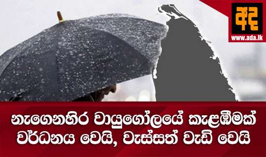 Read Moreශ්රී ලංකාවට නැගෙනහිර දෙසින් පහළ වායුගෝලයේ කැලඹිලි ස්වභාවයක් වර්ධනය වෙමින් පවතින බැවින් ඉදිරි දිනවලදී දිවයිනේ උතුරු, නැගෙනහිර සහ ඌව පළාත්වල පවතින වැසි තත්ත්වයේ වැඩිවීමක් බලාපොරොත්තු වෙන බව කාලගුණ විද්යා දෙපාර්තමේන්තුව පවසයි.