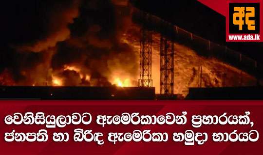 Read Moreවෙනිසියුලාවට ඇමෙරිකාව විසින් ප්රහාරයක් එල්ල කර තිබේ. අගනගරය වන කරකාස් ඉලක්ක කර මෙම ප්රහාරය එල්ල ව තිබේ. වෙනිසියුලානු ජනපති නිකලෝස් මදුරෝ හා ඔහුගේ බිරිඳ මේ වන විට ඇමෙරිකානු හමුදා භාරයට ගෙන ඇති බව ඇමෙරිකානු ජනපතිවරයා පවසයි. එසේම මේ වන විට වෙනිසියුලානු ජනපති හා බිරිඳව වෙනිසියුලාවෙන් පිටකරගෙන යමින් සිටින බවද ඇමෙරිකානු ජනපතිවරයා පවසයි.