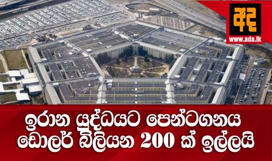 Read Moreඉරානයේ යුද්ධයට අරමුදල් සැපයීම සඳහා පෙන්ටගනය ධවල මන්දිරයෙන් ඩොලර් බිලියන 200 (£ බිලියන 151) කට වඩා අනුමත කරන ලෙස ඉල්ලා ඇති බව ජ්යෙෂ්ඨ පරිපාලන නිලධාරියෙක් වොෂින්ටන් පෝස්ට් වෙත පවසා තිබේ.