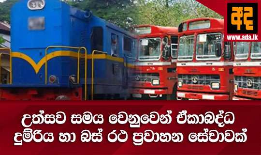 Read Moreඋත්සව සමය වෙනුවෙන් අද (24) සිට ක්රියාත්මක වන පරිදි කොළඹ සිට පිට පළාත්වලටත් යළි අගනුවරට ඒමටත් විශේෂ බස් රථ සහ දුම්රිය සේවාවක් ජාතික ගමනාගමන කොමිසමේ අධීක්ෂණයෙන් ශ්රී ලංකා ගමනා ගමන මණ්ඩලය සහ ශ්රී ලංකා දුම්රිය දෙපාර්තමේන්තුව, සියළුම පළාත් මාර්ගස්ථ මගී ප්රවාහන අධිකාරිවල ඒකාබද්ධ දායකත්වයෙන් ක්රියාත්මක කර ඇත.