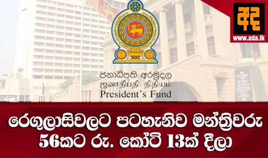 Read Moreපවත්නා නීති රීති හා රෙගුලාසිවලට පටහැනිව ඉකුත් වසර 20 කාලය තුලදි (2005-2024) ජනාධිපති අරමුදල මගින් හිටපු පාර්ලිමේන්තු හා පළාත් සභා මන්ත්රිවරු 56 දෙනෙකු වෙත රුපියල් දහතුන්කෝටි, දහතුන්ලක්ෂ,හැත්තෑඑක්දහස් එකසියදහයක (131,371,110) මුදලක් වෛද්යධාර වශයෙන් ලබා දි ඇති බැව් ජාතික විගණන කාර්යාලය පවසයි.