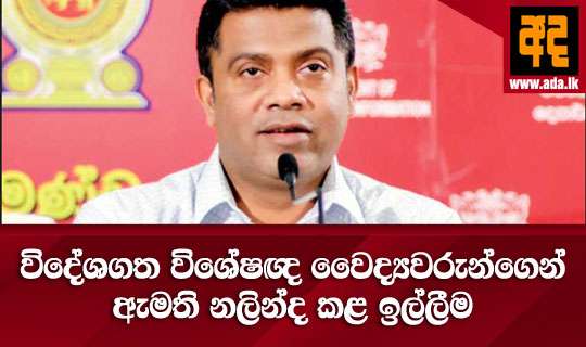 Read Moreපසුගිය කාලය තුළ විවිධ හේතූන් මත මෙරට රාජ්ය සේවය අතහැර විදෙස් ගත වූ විශේෂඥ වෛද්යවරුන්ට නැවැත සේවය සඳහා ශ්රී ලංකාවට පැමිණෙන ලෙස සෞඛ්ය හා ජනමාධ්ය අමාත්ය වෛද්ය නලින්ද ජයතිස්ස මහතා විදේශගතව සිටින විශේෂඥ වෛද්යවරුන් ගෙන් විශේෂ ඉල්ලීමක් කරනු ලැබීය.