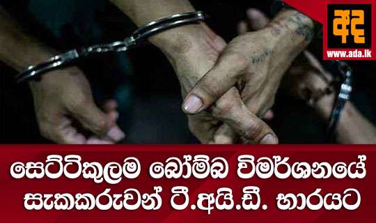 Read Moreසෙට්ටිකුළම ප්රදේශයේ සගවා ඇති විශාල බෝම්බ තොගයක් පිළිබද පොලිස් විමර්ශන ආරම්භ වීමත් සමග ඉන්දියාවට පළා ගොස් සිටි ද්රවිඩ ජාතිකයන් තිදෙනා එරට ආරක්ෂක අංශ නිලධාරීන් විසින් අත් අඩංගුවට ගෙන 10/29 දින අලුයම එරටින් පිටුවහල් කර කටුනායක ගුවන් තොටුපොළ වෙත එවා තිබියදී ගුවන් තොටුපොළ අපරාධ පරීක්ෂණ දෙපාර්තමේන්තු නිලධාරීන් විසින් අත් අඩංගුවට ගෙන තිබේ .