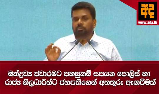 Read Moreමත්ද්රව්ය ජාලයට සම්බන්ධ වී ඇති පොලිස් නිලධාරින්ට වහාම එම ජාලයෙන් ඉවත් වන ලෙසට සඳහන් කරන බව ජනපති අනුර කුමාර දිසානායක මහතා පැවැසීය.
