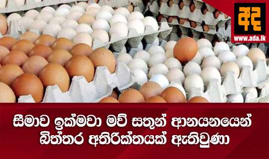 Read Moreදෙපාර්තමේන්තුවේ සංඛ්යා දත්ත අනුව බිත්තර නිෂ්පාදනයට රුපියල් 31ක් පමණ වැයවන තත්වයකදීත් ගොවියාට බිත්තරයක් රුපියල් 22, 23 සීමාවෙන් පාඩුපිට අළෙවි කිරීමට සිදුව ඇත්තේ පමණ ඉක්මවා මවුසතුන් ආනයනය කිරීමෙන් ඇතිව තිබෙන බිත්තර අතිරික්තය නිසා බැව් සමස්ත ලංකා බිත්තර නිෂ්පාදකයින්ගේ සංගමයේ සභාපති සරත්නායක් මහතා පවසයි.