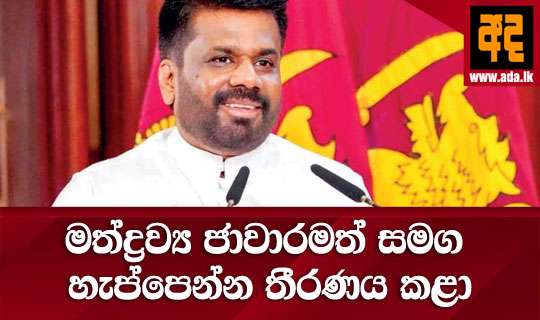 Read Moreමත්ද්රව්ය ජවාරාම සමග හැප්පෙන්න රජය තීරණය කර තිබෙන බව ජනපති අනුර කුමාර දිසානායක මහතා පැවැසීය. රටම එකට’ ජාතික මෙහෙයුම ආරම්භ කිරීමේ අවස්ථාවට එක්වෙමින් ජනපතිවරයා මේ බව පැවැසීය.