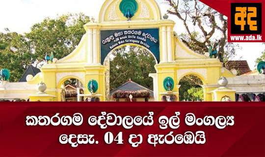 Read Moreඓතිහාසික රුහුණු මහා කතරගම දේවාලයේ වර්ෂ අවසන් මංගල්ය වන ඉල් මංගල්ය එලඹෙන දෙසැම්බර් 04 වැනි දින පැවැත්වෙන බව කතරගම දේවාලයේ වැඩබලන බස්නායක නිලමේ තිළිණ මධුසංඛ මහතා සඳහන් කරයි.