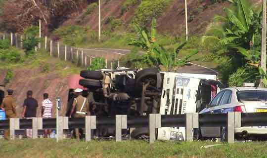 Read Moreදක්ෂිණ අධිවේගී මාර්ගයේ සියවැනි කිලෝමිටරය ආසන්නයේ දි මාළු පැටවු ලොරි රථයක් පෙරළි යාමෙන් අනතුරට ලක්ව ඇති බැව් අධිවේගි මාර්ගයේ පින්නදුව පොලිස් මුරපොළ පවසයි.