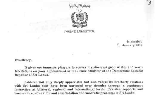 Read Moreඅගමැති ලෙස යළිත් පත්වූ රනිල් වික්රමසිංහ මහතාට පාකිස්ථාන අග්රාමාත්ය ඉම්රාන් ඛාන් මහතා සුභාශිංසන පළ කර තිබේ.
