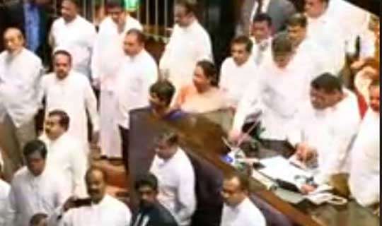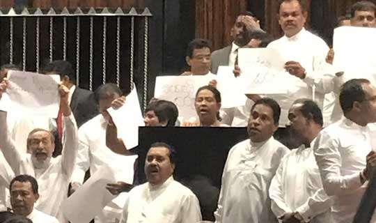 Read Moreආණ්ඩු පක්ෂ මන්ත්රීවරු කථානායක අසුන අසළ විරෝධයක නිරත වෙමින් සිටිති.