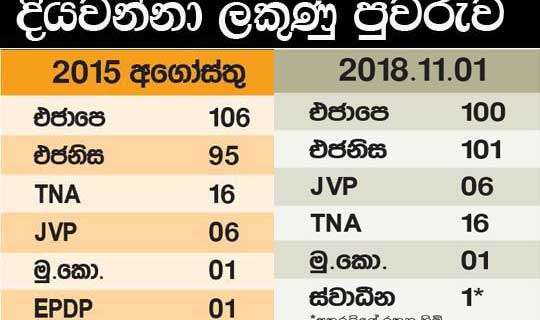 Read Moreමේ සියලු දෑ ආරම්භ වූ ඔක්තෝබර් 25 දා තිබුණ තත්ත්රයට ආපසු යෑම සිදුවුණා. ඒ අනුව 26 දා සිට ක්රියාත්මක වුණ ව්යවස්ථා කුමන්ත්රණය පාර්ලිමෙන්තුව පරාජයට පත්කර තිබෙනවා.