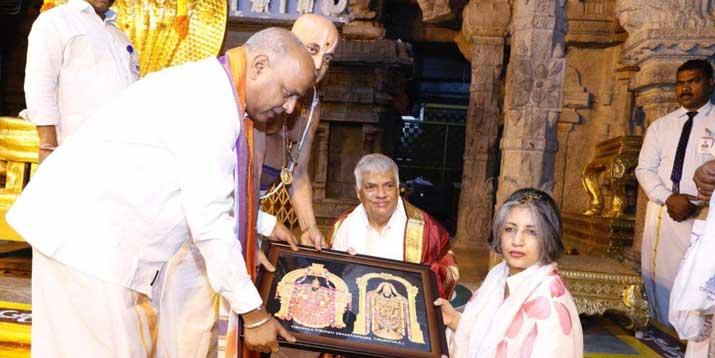 අග්රාමාත්ය රනිල් වික්රමසිංහ මහතා ඉන්දියාවේ තිරුපති දේවාලයේ ආගමික වතාවත් සඳහා එක්වී තිබේ.