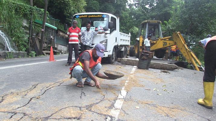 එම ස්ථානයේ මාර්ගය පැලි ඇති තැන් වලින් ජලය කාන්දු විම නවතා දැමිම සදහා රසායනික ද්රව්යයක් යොදා ඉන් මතුපිට වැලි අතරන ආකාරය දකින්නට හැකි විය.