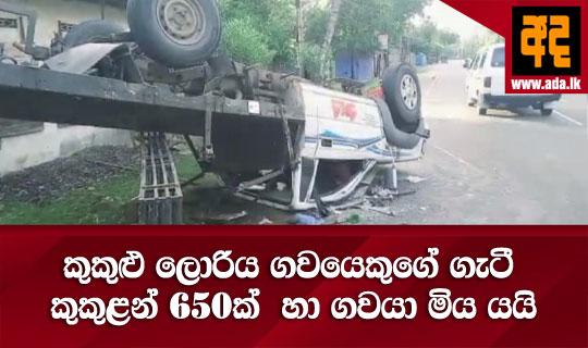 මඩකලපුව-කල්මුණේ ප්රධාන මාර්ගයේ පුතුකුඩිඉරිප්පු ප්රදේශයේදී කුකුළන් ප්රවාහනය කළ ලොරියක් මාර්ගය මත වැතිර සිටි අයාලේ යන් ගවයන් සමඟ ගැටීමෙන් ලොරියේ සිටි කුකුළන් 650ක් පමණ මිය ගිය බව දැනගන්නට ලැබේ.