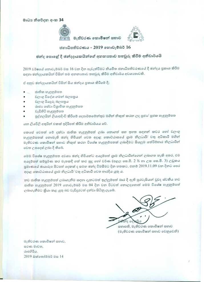 ජනපතිවරණයේදී ජන්දය භාවිත කිරීමේදී ඡන්ද දායකයන් තම අනන්යතාව තහවුරු කිරීම අනිවාර්ය බව මැතිවරණ කොමිෂන් සභාවේ සභාපති මහින්ද දේශප්රිය මහතා පවසයි.