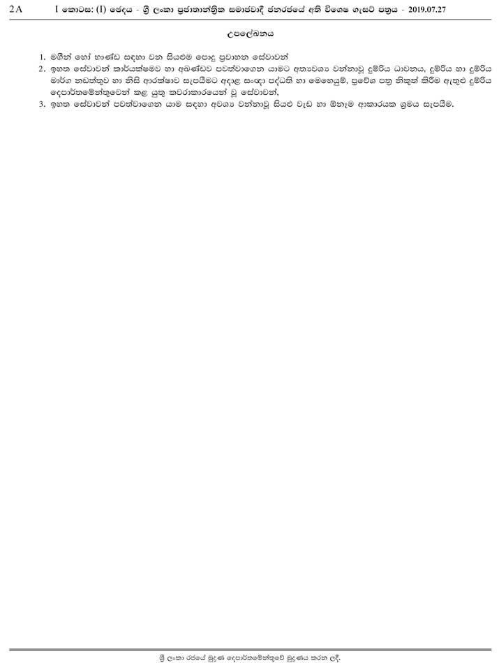 දුම්රිය සේවයද ඇතුළුව මගීන් හා භාණ්ඩ ප්රවාහනය කරන පොදු සේවාවන් තවදුරටත් අත්යාවශ්ය සේවාවක් කිරීමේ අතිවිශේෂ ගැසට් නිවේදනය නිකුත් කර තිබේ.