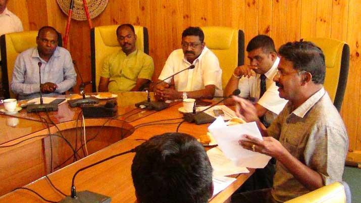 නුවරඑළිය දිස්ත්රික්කයේ පවතින අයහපත් කාලගුණික තත්ත්වය සහ ඒ සම්බන්ධයෙන් කඩිනම් සහන සේවා ක්රියාත්මක කළ යුතු ආකාරය පිළිබඳව රාජ්ය නිලධාරීන් හා පළාත් පාලන ආයතන ප්රධානීන් දැනුවත් කිරිමේ සාකච්ඡාවක් ප්රජා සවිබල ගැන්වීම් සහ වතු යටිතල පහසුකම් සංවර්ධන අමාත්ය ආරුමුගම් තොණ්ඩමන් මහතාගේ ප්රධානත්වයෙන් නුවරඑළිය දිස්ත්රික් ලේකම් කාර්යාලයේදි අද (01) පැවැත්විණි.