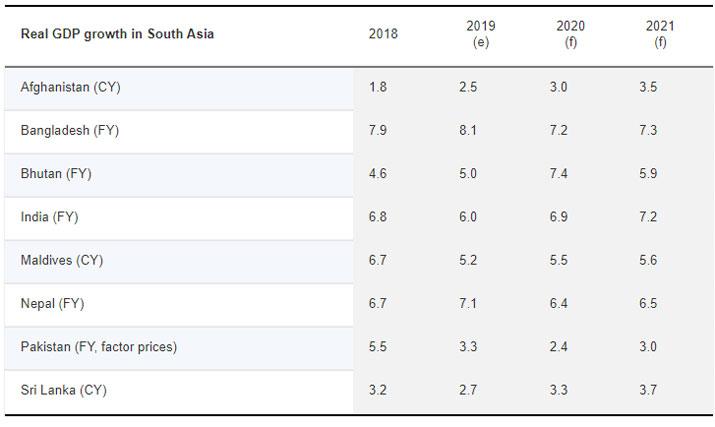 සමස්තයක් ලෙස දකුණු ආසියාවේ ආර්ථික වර්ධනය මේ වසරේදී පහළ යනු ඇති බවත් ලෝක බැංකුව සඳහන් කරයි. මේ වසර අවසන් වන දකුණු ආසියාවේ ආර්ථික වර්ධනය සියයට 5.9ක් දක්වා පහළ යනු ඇති බව ලෝක බැංකුව සඳහන් කරයි.