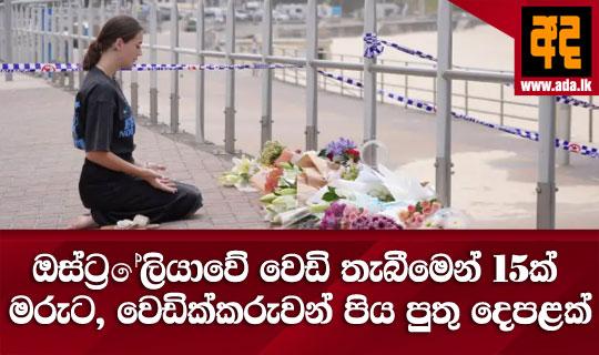 යුදෙව් ජාතිකියන්ගේ සැමරුම් උත්සවයක් අතරතුර ඔස්ට්රේලියාවේ නිව් සවුත් වේල්ස්හි බොන්ඩි වෙරළ තීරයේ සිදුවූ වෙඩි තැබිමෙන් මියගිය සංඛ්යාව 15ක් බවට පත්ව තිබේ. මෙසේ ජීවිතක්ෂයට පත්වූ පිරිස වයස අවුරුදු 10 සිට 87 අතර පසුවන්නන් අතර අවුරුදු 10ක ගැහැණු දරුවෙක්ද ජීවිතක්ෂයට පත්ව තිබේ.