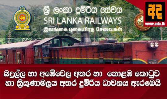 Read Moreදිට්වා සුලි කුණාටුවෙන් පසු උඩරට දුම්රිය මාර්ගයේ ස්ථාන කිහිපයක් නායයෑමෙන් දින 23කට පසු අඹේවෙළ සිට බදුල්ල දක්වාත් බදුල්ලලේ සිට අඹේවෙළ දක්වත් දුම්රියන් දෙකක් (20) දින උදෑසන 9:30ට ධාවනය කරනු ලැබුවා.