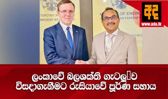 ගෝලීය ආර්ථිකයට බලපෑම් ඇති කරමින් ආරම්භ වූ ඇමරිකානු - ඊශ්රායල - ඉරාන යුද්ධය හේතුවෙන් ශ්රී ලංකාවට උද්ගත වී ඇති බලශක්ති අර්බුදය විසඳා ගැනීමට රුසියානු රජයේ පූර්ණ සහය ලබාදෙන බව රුසියාවේ බලශක්ති නියෝජ්ය අමාත්ය රමන් මර්ශාවින් මහතා පවසයි.