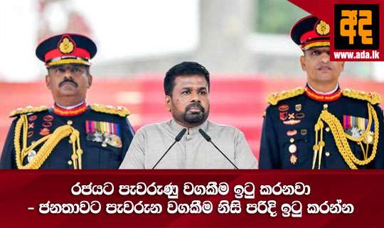 රජයක් ලෙස පැවරුණු වගකීම රට ගොඩනගා ගැනීම වෙනුවෙන් යොදා ගන්නා බවට සඵත කරන බවත්, එමෙන්ම ජනතාවට පැවරී තිබෙන කාර්ය සහ වගකීම නිසි පරිදි ඉටු කරන ලෙස ජනතාවට සඳහන් කරන බවත් ජනාධිපති අනුර කුමාර දිසානායක මහතා පැවසීය.