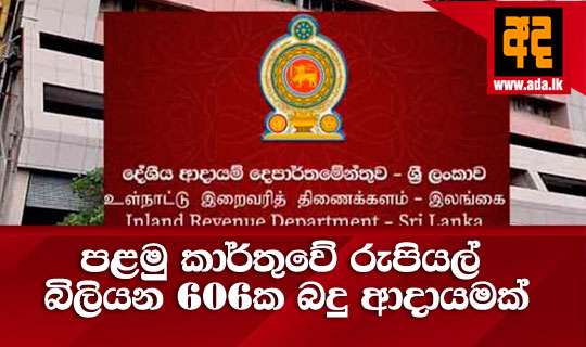 2026 වර්ෂයේ පළමු කාර්තුව තුළ ‌දේශීය ආදායම් දෙපාර්තමේන්තුව රුපියල් මිලියන 606,002ක බදු ආදායමක් රැස්කරගෙන ඇති බව එම දෙපාර්තමේන්තුව පවසයි.