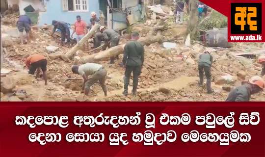 Read Moreකදපොළ ප්රදේශයට ඇදහැලුණු අධික වර්ෂාව හේතුවෙන් කදපොල චන්දිරිගම නායයැමකින් අතුරුදහන් වූ මව, දරුවන් දෙදෙනා සහ දරුවන් දෙදෙනාගේ මිත්තනිය සොයා නුවරඑලිය සිංහ රෙජිමේන්තුවේ භට පිරිසි විසින් (01) දින මෙහෙයුමක් දියත් කලහ.