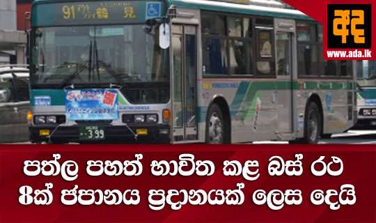 Read Moreලංකාවේ පොදු ප්රවාහනය ශක්තිමත් කිරිම වෙනුවෙන් ජපානය තුළ භාවිත කරනු ලැබූ පත්ල පහත් බස් රථ 8ක් ප්රදානයක් ලෙස ලබාදිමට ජපානය එක ඟ ව තිබේ. ඒම ප්රධානය ලබා ගැනිම වෙනුවෙන් ප්රවාහන අමාත්යවරයා ඉදිරිපත් කළ යෝජනාවට කැබිනට් අනුමැතිය ලැබී තිබේ.