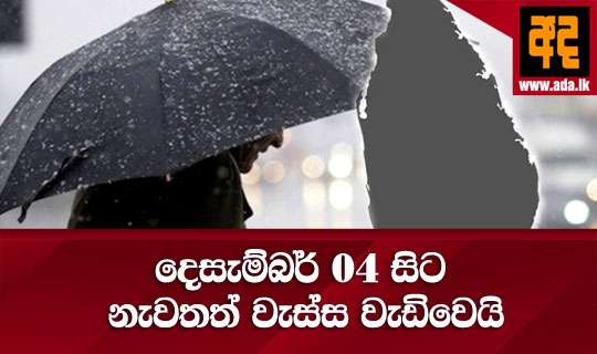 Read Moreඉදිරි දින කිහිපයේදී දිවයින හරහා ඊසාන දිග මෝසම් තත්ත්වය ක්රමයෙන් ස්ථාපිත වෙතැයි අපේක්ෂා කරන බව කාලගුණ විද්යා දෙපාර්තමේන්තුව පවසයි.