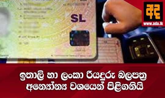ඉතාලිය සහ ශ්රී ලංකාව අතර රියදුරු බලපත්ර අන්යෝන්ය වශයෙන් පිළිගැනීම සඳහා වන ගිවිසුම අත්සන් තැබීමට කැබිනට් අනුමැතිය හිමිව තිබේ. ශ්රී ලංකාව හා ඉතාලිය අතර රියදුරු බලපත්ර අන්යෝන්ය වශයෙන් පිළිගැනීම පිළිබඳ ද්විපාර්ශ්වික ගිවිසුමකට 2011 වසරේදී එළඹ ඇති අතර, 2021 වර්ෂයේදී එම ගිවිසුමේ වලංගු කාලය අවසන් වී ඇත.