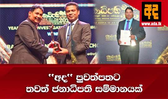 Read Moreජනාධිපති මාධ්ය සම්මාන උළෙල 2025 “නව්යකරණ තුළ විශ්වසනීය මාධ්යකරණයක්” යන සංකල්පය යටතේ නෙළුම් පොකුණ රඟහලේදී පසුගිය 11 වනදා සවස පැවැත්වූ ජනාධිපති මාධ්ය සම්මාන උළෙලේදී වසරේ විශිෂ්ටතම විමර්ශනාත්මක මාධ්යවේදියාට හිමි මුද්රිත මාධ්ය සිංහල අංශයේ සම්මානය ’’අද’’ පුවත්පතේ රාහුල් සමන්ත හෙට්ටිආරච්චිට හිමිවිය. මෙම සම්මාන උළෙල සංවිධානය කර ඇත්තේ සෞඛ්ය හා ජානාමාධ්ය අමාත්යාංශය විසින් වේ.