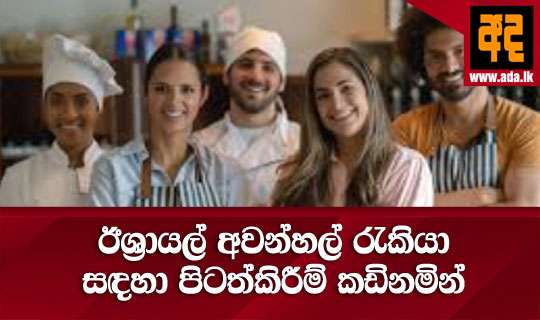 Read Moreඊශ්රායල් රජය හා ශ්රි ලංකා රජය අතර ඇති කරගත් අවබෝධතා ගිවිසුම අනුව මෙම වර්ෂය තුළදී ශ්රි ලාංකිකයින් 932 කු සඳහා ඊශ්රායලයේ අවන්හල් ක්ෂේත්රයේ රැකියා අවස්ථා හිමි වී තිබේ.