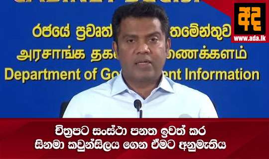 Read More1971 අංක 47 දරන ශ්රී ලංකා ජාතික චිත්රපට සංස්ථා පනත ඉවත් කර, ශ්රී ලංකා ජාතික සිනමා කවුන්සිලය ස්ථාපිත කිරීම සඳහා පනත් කෙටුම්පතක් සකස් කිරීමට කැබිනට් මණ්ඩලයේ අනුමැතිය හිමිව තිබේ.