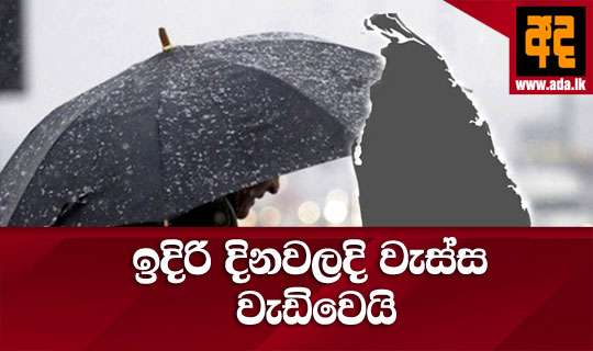 දිවයිනේ උතුරු, උතුරුමැද සහ නැගෙනහිර පළාත්වල වැසි තත්ත්වයෙන් වැඩිවීමක් ඉදිරි දින වලදී බලාපොරොත්තු වන බව කාලගුණ විද්යා දෙපාර්තමේන්තුව පවසයි.