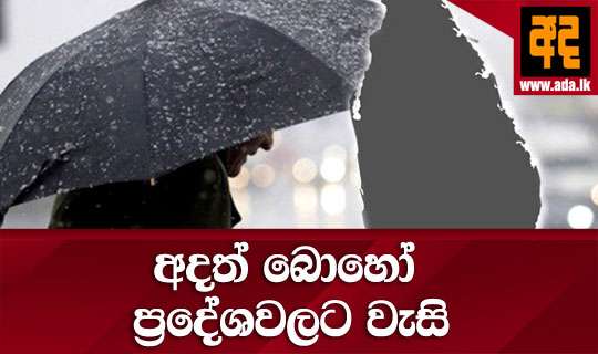Read Moreදිවයිනේ බොහො ප්රදේශවලට පස්වරු 1.00 න් පමණ පසුව වැසි හෝ ගිගුරුම් සහිත වැසි ඇති වන බව කාලගුණ විද්යා දෙපාර්තමේන්තුව පවසයි.