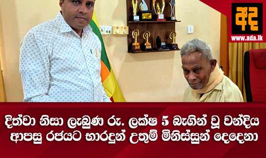 Read More’’මට වඩා අසරණ අය ඕනෑතරම් ඉන්නවා. මට මේ ආපදාවෙන් යම් හානියක් වුණා තමයි. ඒත් මට තවමත් නැගී සිටින්න ශක්තියක් තියෙනවා. මම දැක්කා මේ විපතින් තමන්ගේ මුළු ජීවිතයම අහිමි වෙලා, අදටත් කන්න බොන්නවත් විදිහක් නැතිව අන්ත අසරණ වෙලා ඉන්න මිනිස්සු. රජයේ මුදල් කියන්නේ ජනතාවගේ මුදල්. ඒ නිසා මේ ලක්ෂ පහ මට වඩා අසරණ වෙච්ච කෙනෙක් වෙනුවෙන් යොදවනවා නම් මම වඩාත් සතුටු වෙනවා. මීර මීට පෙර මට ලැබුණු රුපියල් විසිපන් දහසින් (25000) හානි වෙලා තිබුණු කොටස හදා ගත්තා.’’තමන් මෙ