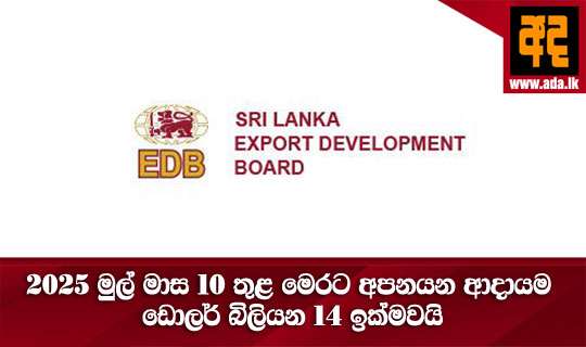Read More2025 මුල් මාස දහය තුළ ශ්රී ලංකාවේ අපනයන ආදායම ඇමරිකානු ඩොලර් බිලියන 14.4 ඉක්මවා ඇති බව අපනයන සංවර්ධන මණ්ඩලය සඳහන් කරයි.