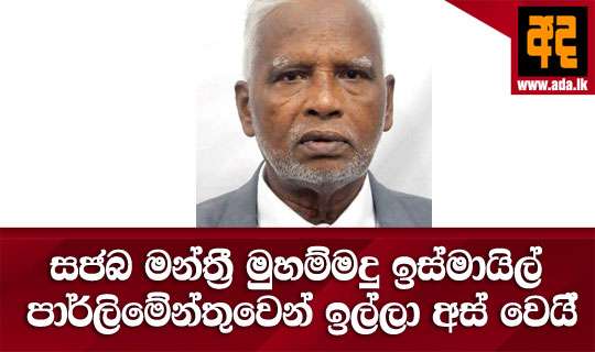 Read Moreපාර්ලිමේන්තු මන්ත්රී මුහම්මදු ඉස්මායිල් මුත්තු මුහම්මදු මහතා සිය පාර්ලිමේන්තු මන්ත්රී ධුරයෙන් ඉල්ලා අස් වන බව අද (28) පාර්ලිමේන්තුවේදී ප්රකාශ කළ අතර සිය ඉල්ලා අස්වීමේ ලිපිය පාර්ලිමේන්තුවේ මහ ලේකම් කුෂානි රෝහණදීර මහත්මිය වෙත භාර දී ඇත.